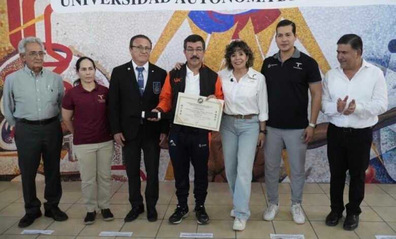La entrega de esta distinción estuvo a cargo del Shihan Juan Gerardo Guerrero Ortiz, director de Grados y de Kata de la Federación Mexicana de Judo, en el marco de la eliminatoria de judo en su etapa “Estatal CONADE 2026″ desarrollada en el Gimnasio Universitario del Campus Victoria, con la presencia de la secretaria de Bienestar Social de Tamaulipas, Silvia Casas González.
